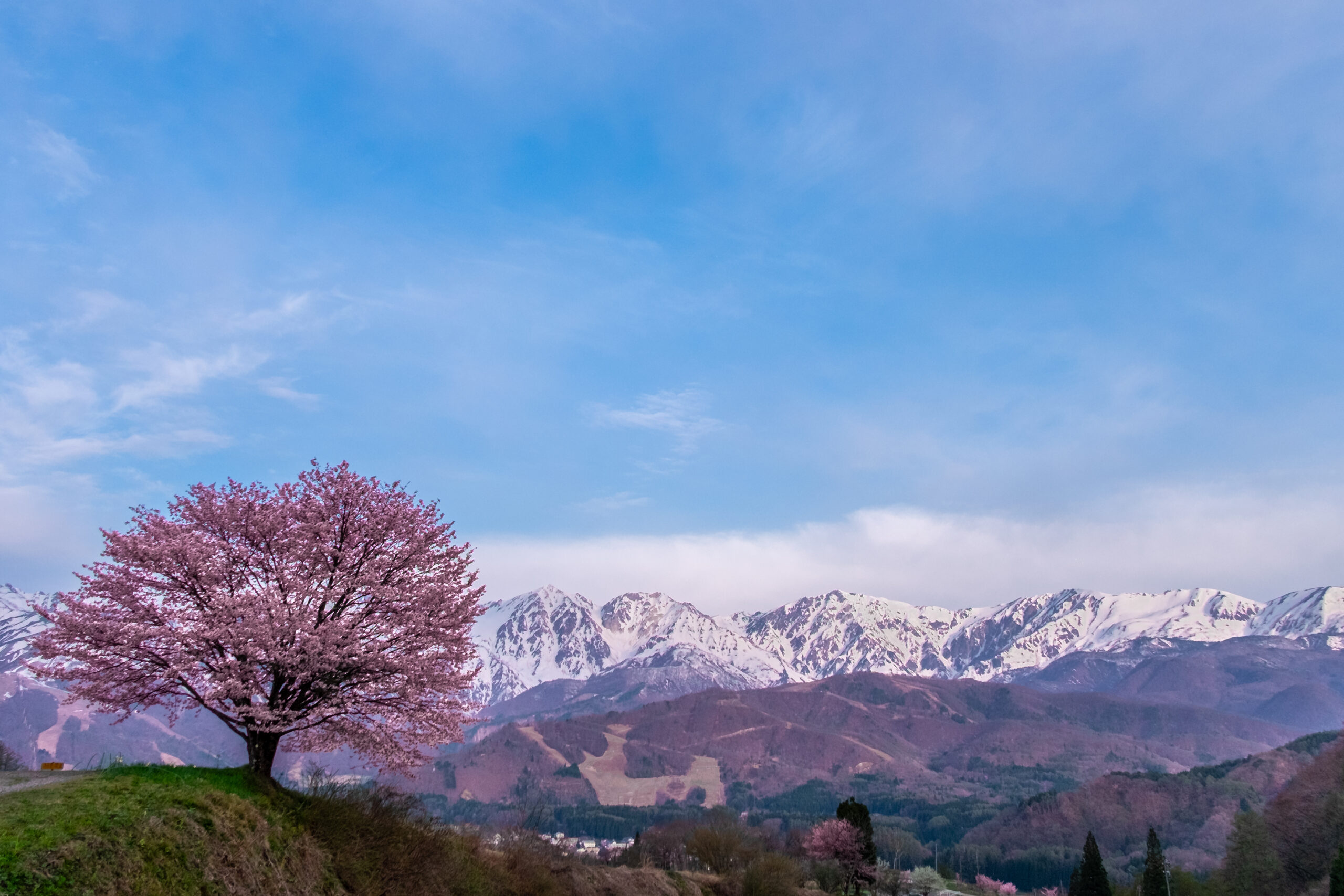 3. 白馬の桜が綺麗に咲いています。