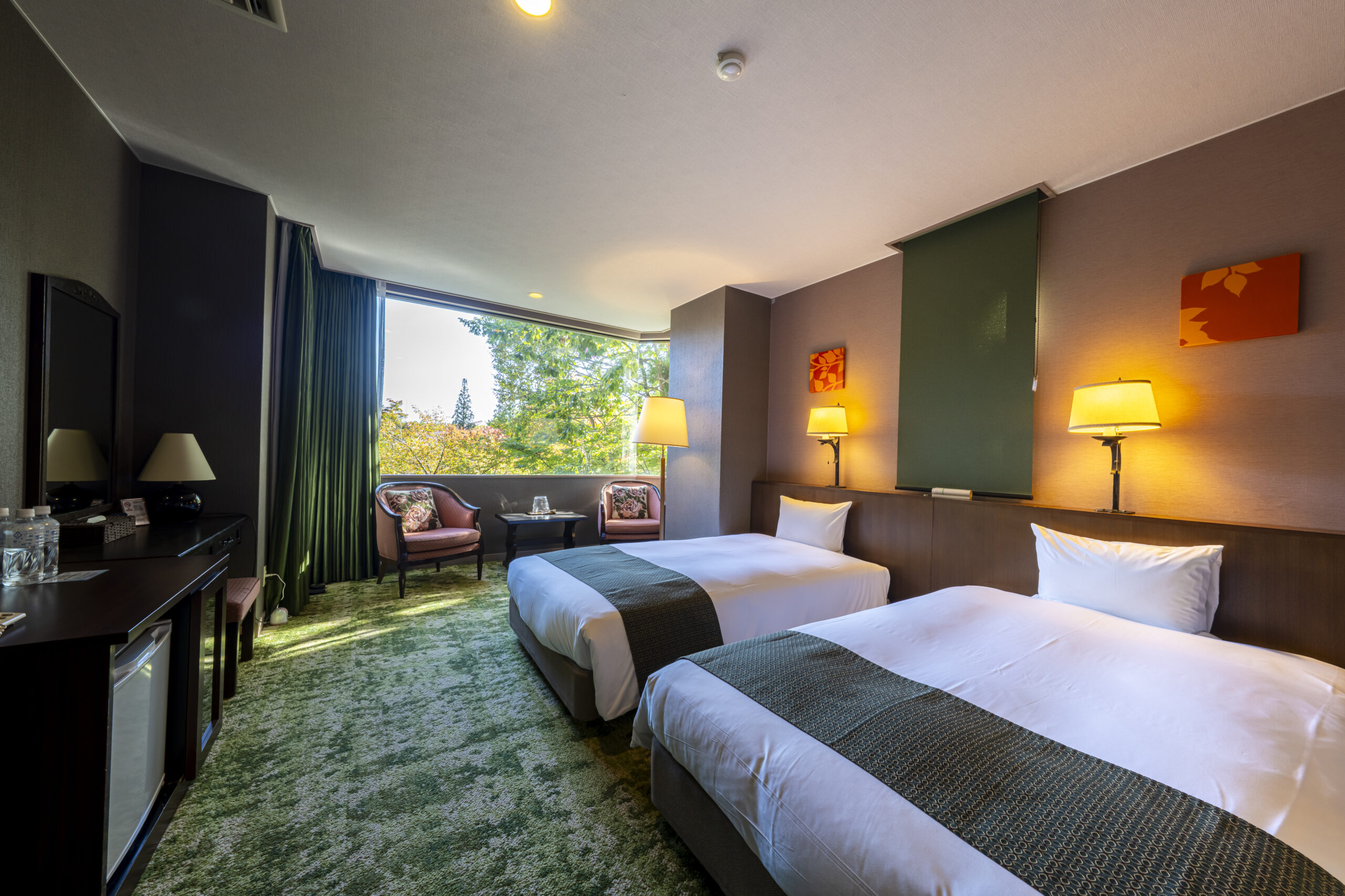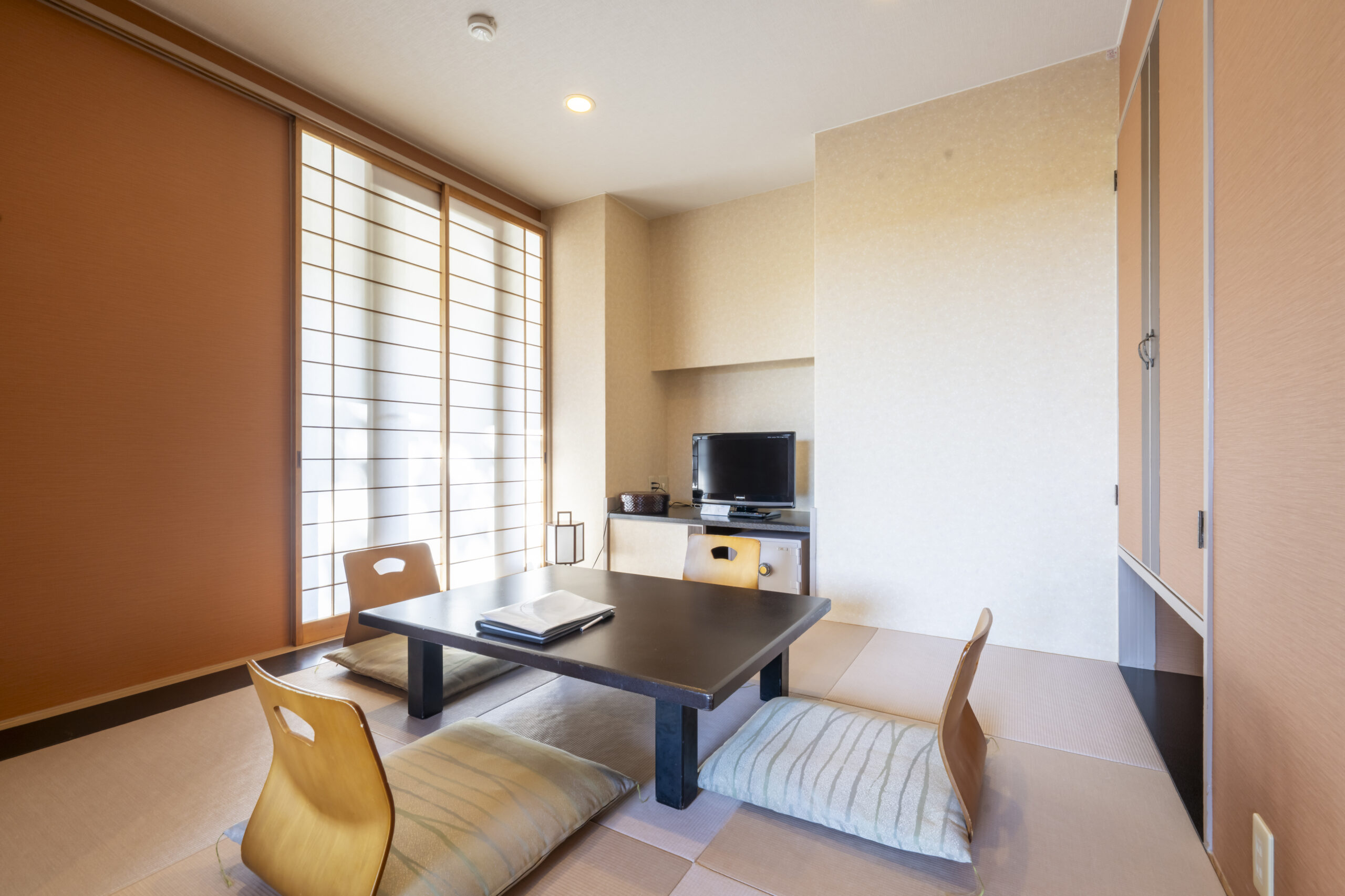 和室も付いた、ゆったりと寛ぎの空間が広がる和洋室のお部屋です。バス・トイレ付きのお部屋で、2世帯でのご滞在にも最適です。ファミリーでの滞在など様々なお客さまにご利用いただいております。