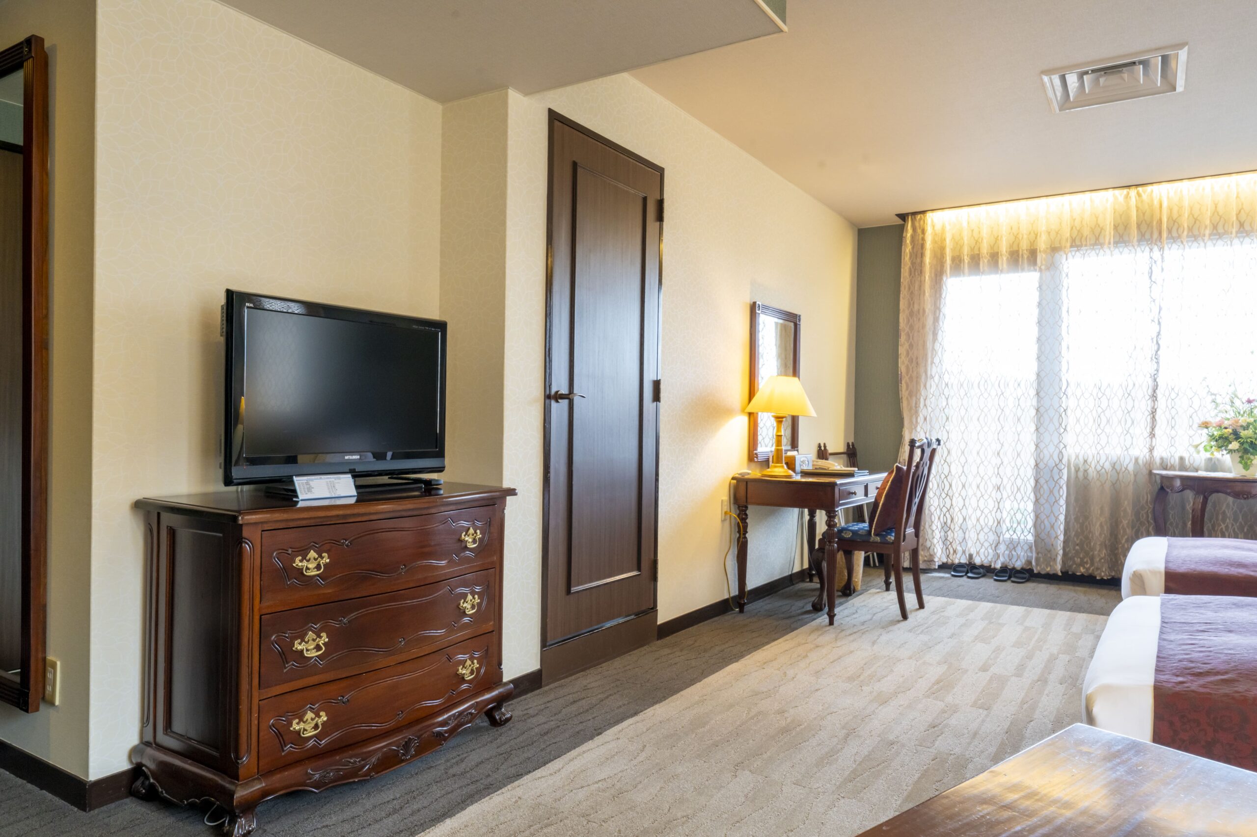 最上階特別室でマウンテンビュー。心地よさと美しさを巧みに取り入れた洗練の客室。窓にはカラマツ林、静寂と余韻をたたえた落ち着き。格式あるインテリア、行き届いたサービスとともに、高級リゾートホテルとしての安らぎと憩いをお楽しみいただいております。ミニキッチン・電子レンジ付。