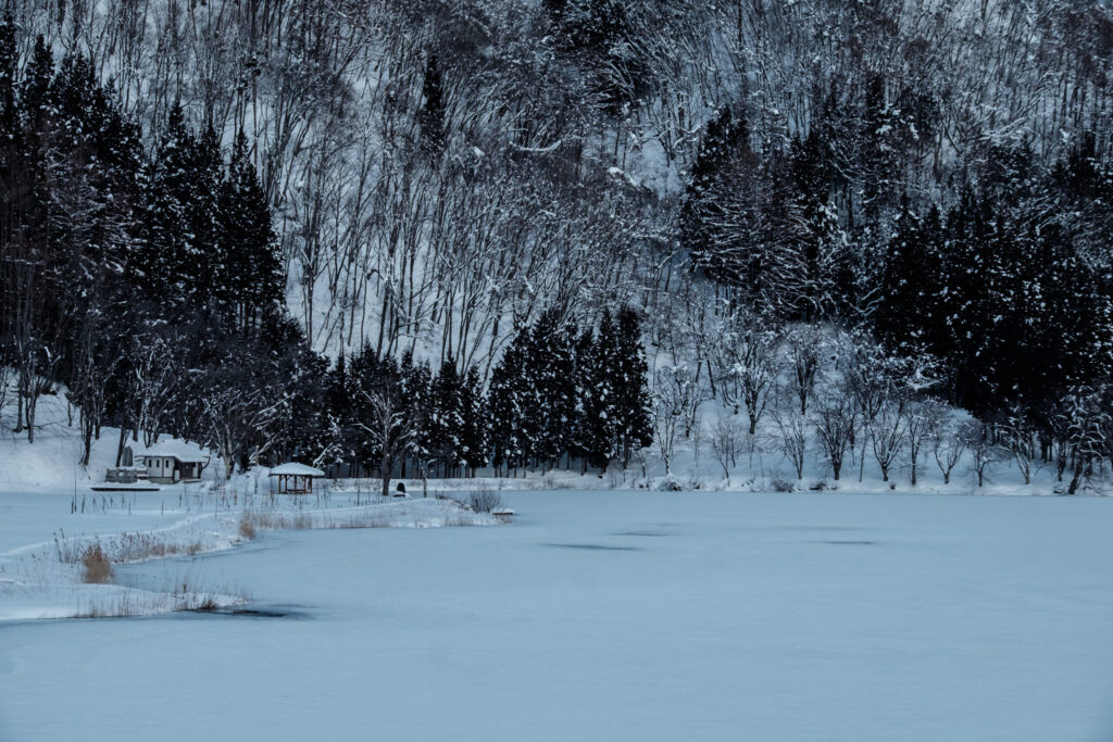 白馬村の近くに仁科三湖があり、その中の中綱湖が結氷していました。ここは全面結氷して氷が厚くなると氷上からワカサギの穴釣りが出来るようになります。ここ数年は氷の厚みが足りずに出来ていないのですが、今年は出来るといいですね。