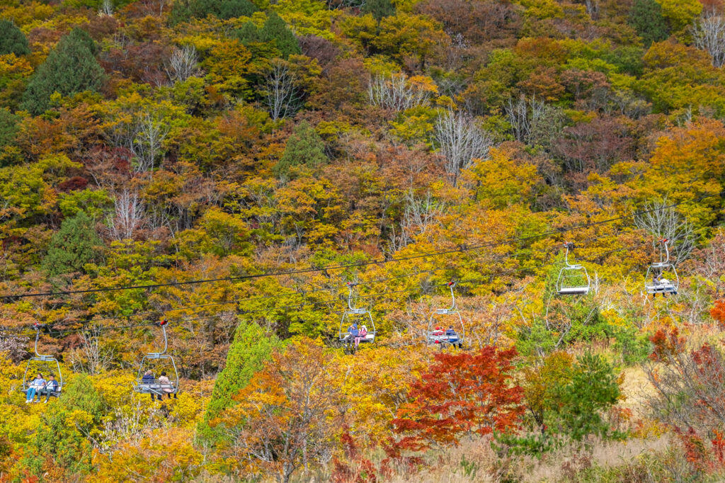 また、リフトの上から見る紅葉も大変綺麗で、ちょっと寒いですが山頂エリアだけでなく、一段下がったヒトトキノモリもおすすめです。