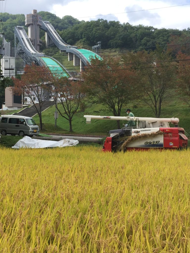 晴天の青空の中、10月4日無事にお米を収穫いたしました!